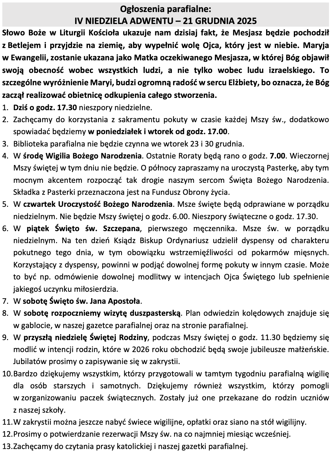 • Ogłoszenia parafialne