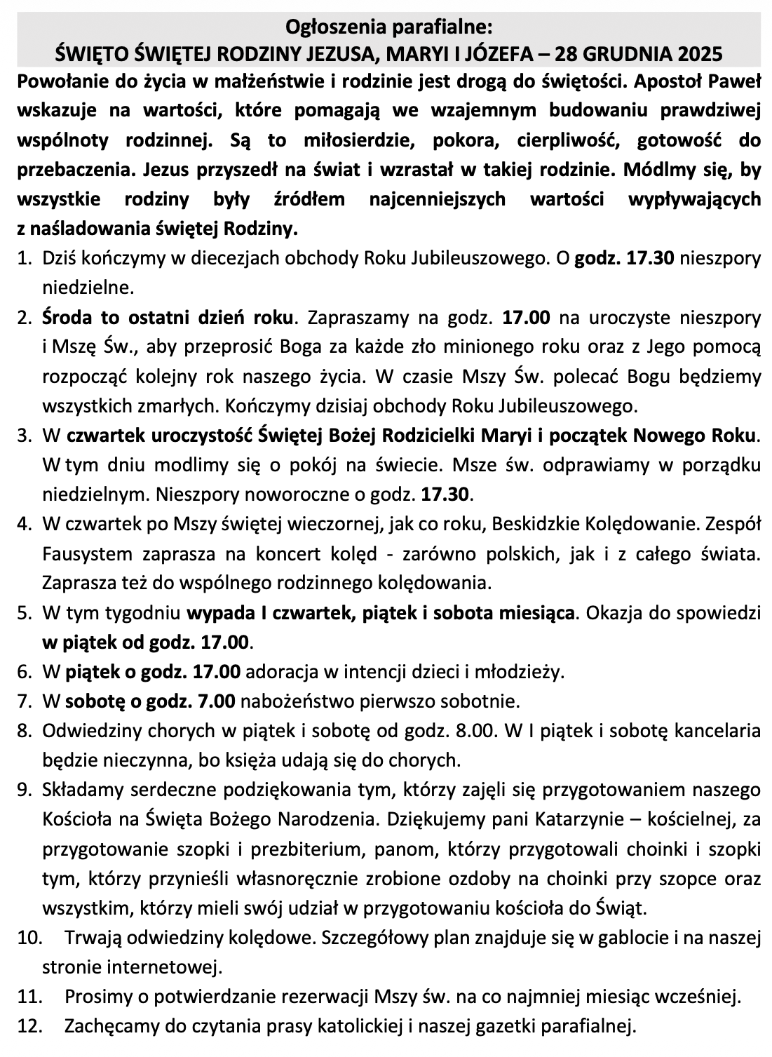 • Ogłoszenia parafialne