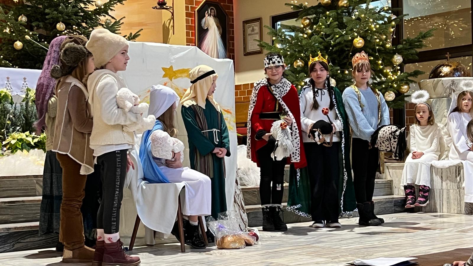 W zeszłą niedzielę w naszej wspólnocie odbyło się wyjątkowe przedstawienie jasełkowe, które utrzymało nas wszystkich w radosnej i pełnej wzruszeń atmosferze Bożego Narodzenia. Wystąpiła Oaza Dzieci Bożych, która z wielkim zaangażowaniem i radością zaprezentowała historię narodzin Pana Jezusa. Mali aktorzy zachwycili publiczność nie tylko piękną grą aktorską, ale także szczerością i autentycznością przekazu.