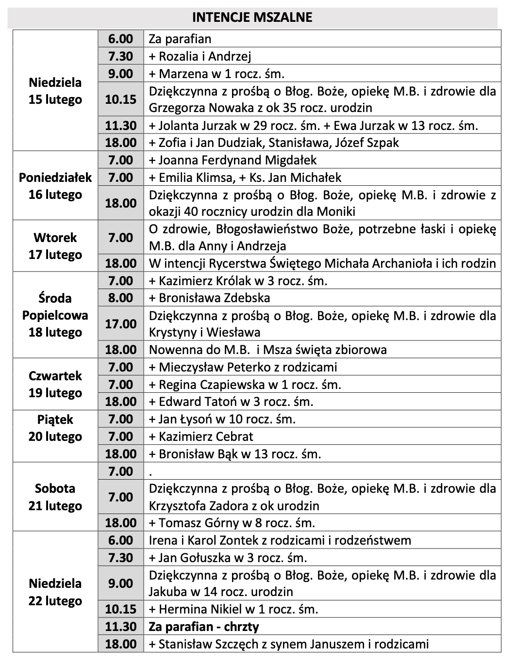 Intencje mszalne