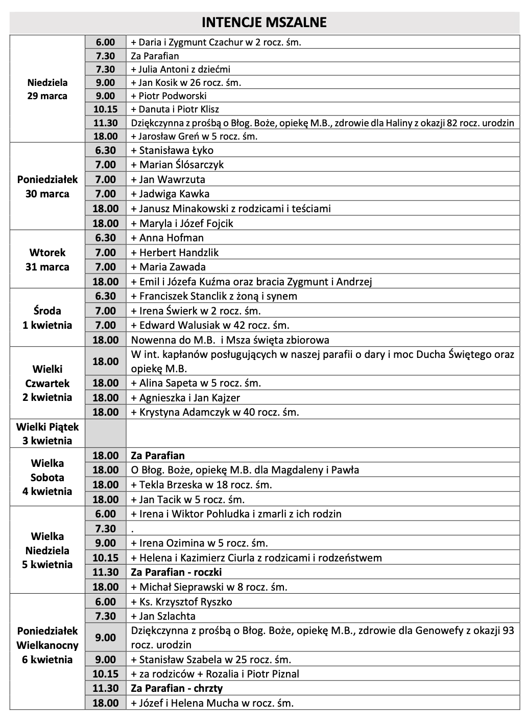 Intencje mszalne