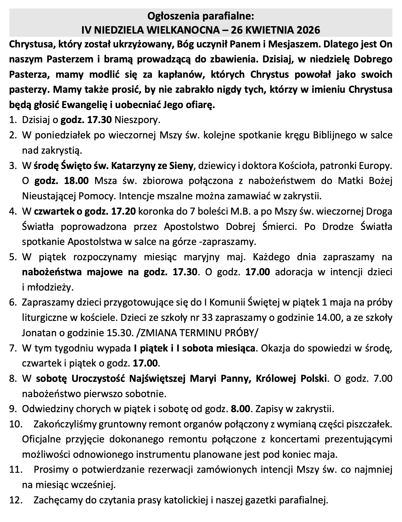 Ogłoszenia parafialne